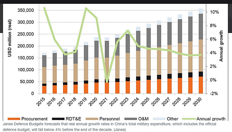 China: evolution of the defense budget